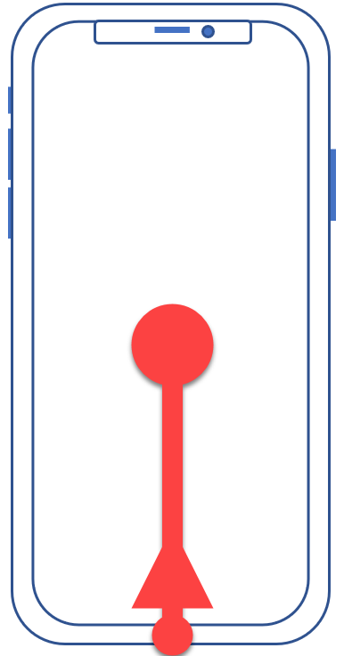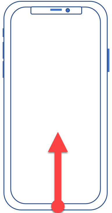 To return to the Home Screen, swipe up from the bottom of the device. You’ll first go to the last Home Screen you were on. To get to your “main” Home Screen, swipe up a second time.